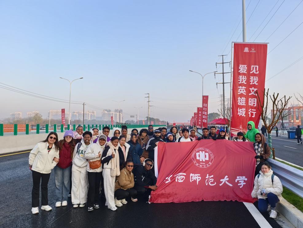 12月28日清晨,我校来自10个国家的33名国际学生代表参加南昌市组织的“爱我英雄城·乐跑隆兴桥”活动。他们以蓬勃的朝气迎接2026年的到来,也在奔跑中亲身体验英雄城现代化建设的铿锵步划,用双脚丈量着这座城市蓬勃发展的轨迹。