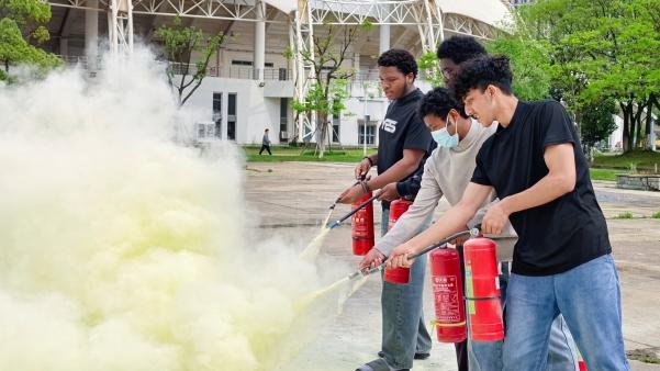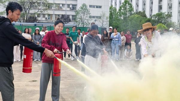 此次消防演练旨在帮助来华留学生掌握基本防火灭火技能,增强突发事件下的应急自救与互助能力,进一步筑牢校园安全防线。